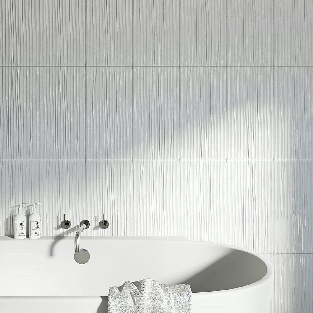 Tile shown: Cascade Wavy White 12×24 Matte Ceramic Wall Tile